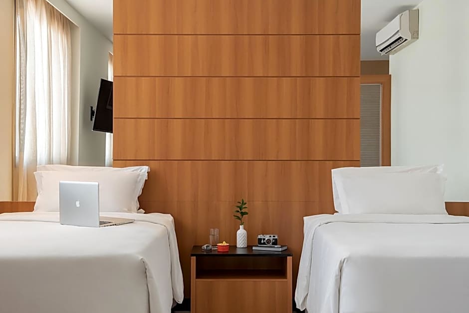 This modern room offers a 26-inch LCD TV with cable channels, plus air conditioning, mini-bar and free internet connection.